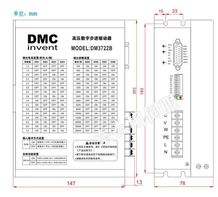 ●適合驅動86,110,130電感量大于10mH步進電機。