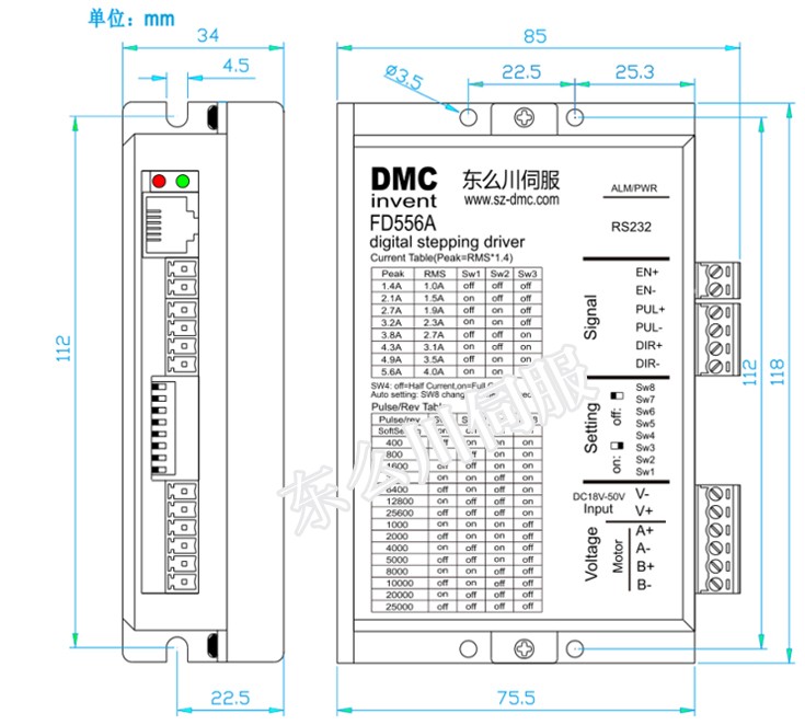 型號:FD556A 名稱:FD556A步進驅動產品型號 32位處理器 簡介: