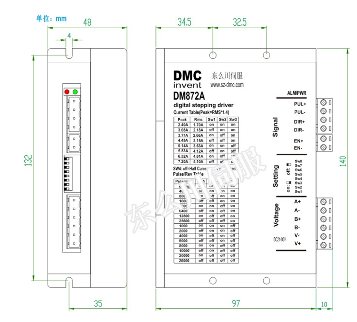 ●低壓兩相步進驅動DM872A智能電流控制提高動態Q值,使電機發熱大為降低