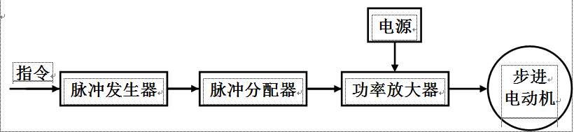 步進電動機的驅(qū)動電源主要由脈沖發(fā)生器、脈沖分配器和脈沖放大器(也稱功率放大器)三部分組成。