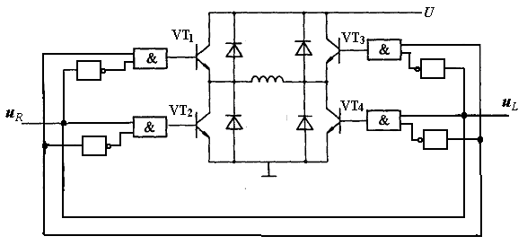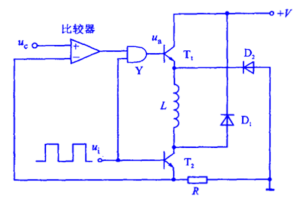 由于繞組電感的作用,R上的電壓逐漸升高,當超過給定電壓uc時,比較器輸出低電平®與門輸出低電平® T1截止®電源被切斷;當取樣電阻上的電壓小于uc時,比較器輸出高電平,與門也輸出高電平,T1又導通,電源又開始向繞組供電。